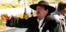 Traje: Gabão de lavrador rico, da Murtosa, com chapéu da mesma cor.