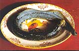 Num alguidar de barro põe-se a lampreia com o vinho, os dentes de alho