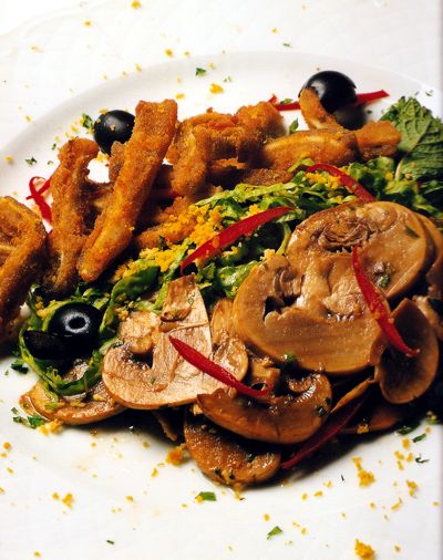 panada com salada de cogumelos frescos