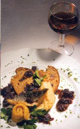 tacho com vinho tinto, compota de groselha e a mostarda.