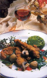 timbale desenformado de cenouras e os cogumelos salteados.