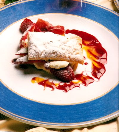 Lave e corte os morangos em pequenas lâminas e misture com o creme.
